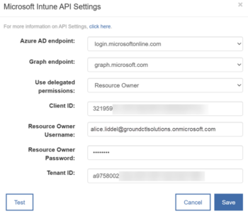 - If you selected Resource Owner as the authentication method for delegated permissions, type the Resource Owner Username and Resource Owner Password.